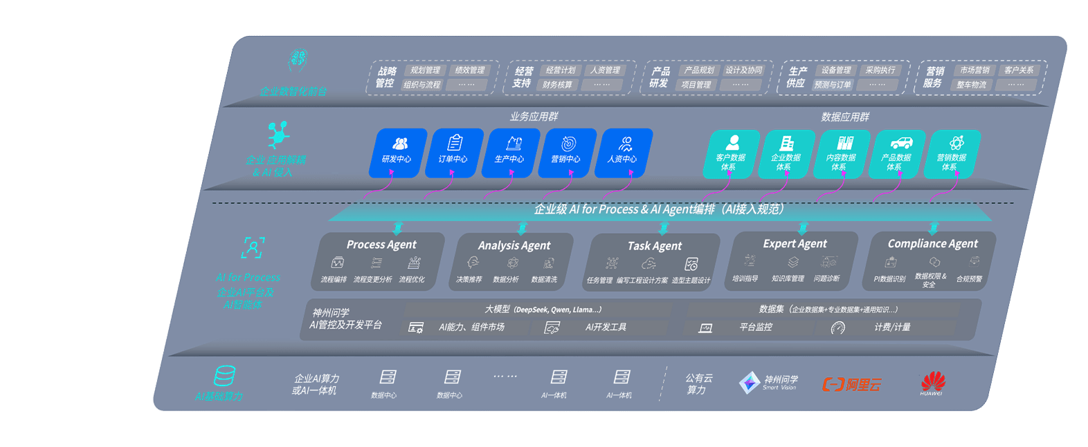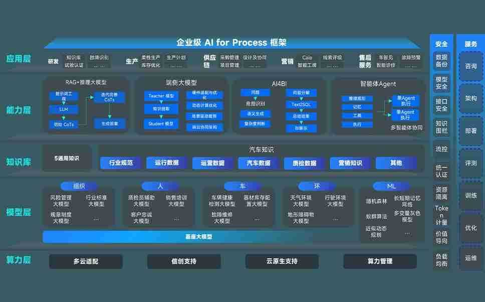z6尊龙问学智车解决方案是一套基于AI技术的汽车行业智能化系统,,,,覆盖从底层算力到顶层AI应用的全栈方案。。方案由算力层、、、、模型层和应用层组成:算力层,,,,方案支持多种一体机配置,,具备云端灵活部署、、多云适配以及动态优化计算资源的能力;模型层,,z6尊龙问学平台版提供了企业级AI应用一站式构建与管理平台,,支持基于后训练强化技术的汽车企业专属模型的训练、、、评测和运营;应用层,,,z6尊龙问学DeepSeek版提供包括超级员工、、、智能招采、、智能营销、、智能客服、、、、AI for BI等一系列解决方案,,,,可助力汽车行业实现数字化转型,,,,让管理更智能、、、、响应更敏捷。。。